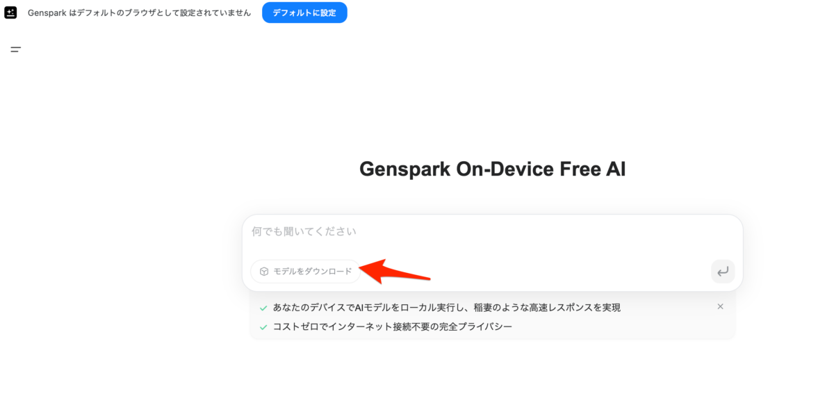 Gensparkブラウザを使えば、インストールしてモデルをダウンロードするだけで、すぐに手元でAIを動かせます。