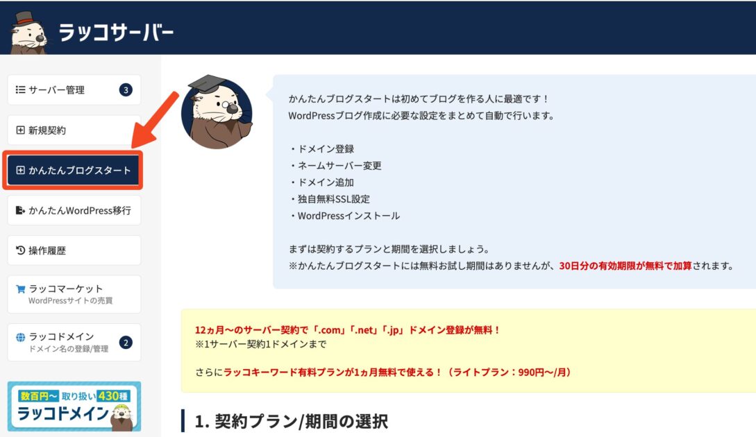 ラッコサーバーを初めて使った時、最も衝撃を受けたのが「かんたんブログスタート」機能でした。