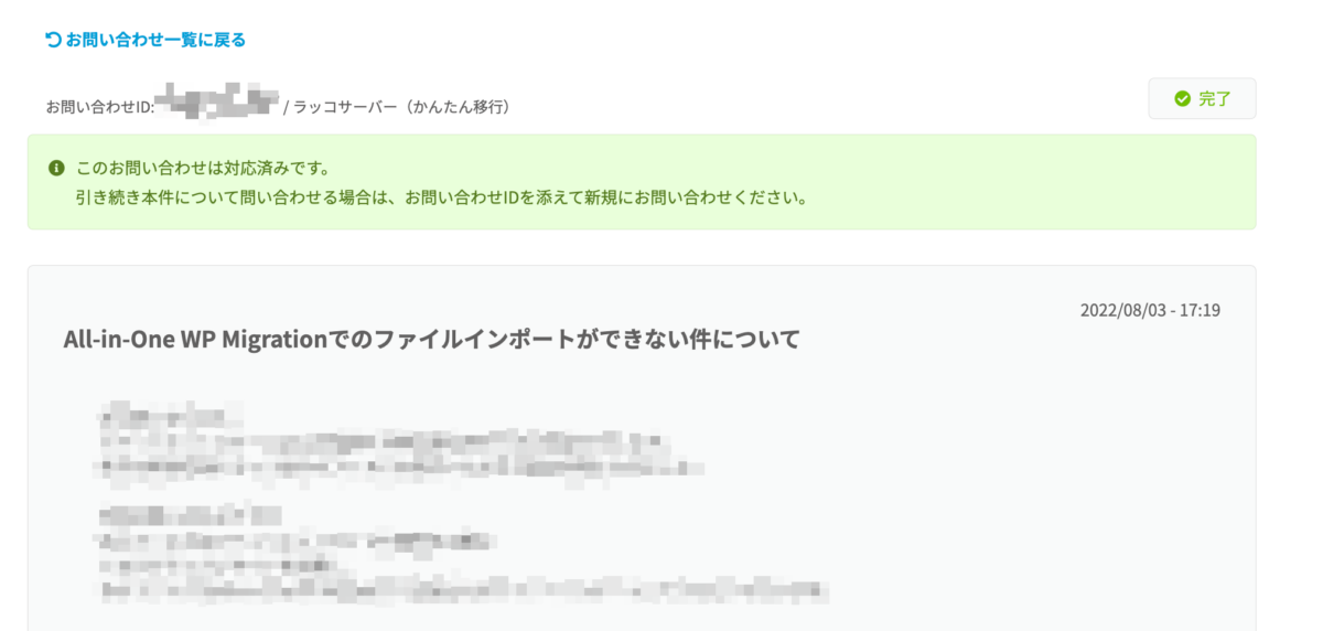 実際に弊社でも、WordPressの機能が一部正常に動作しない不具合が発生した際に問い合わせを行いました。すると、その日のうちに状況を確認し、原因の可能性や対応方針を具体的に共有してくれたのです。