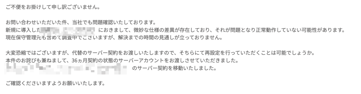 お詫びの気持ちとして、長期契約のサーバーアカウントを新たに提供してくれるなど、単なるマニュアル対応ではない柔軟さと誠意を感じました。