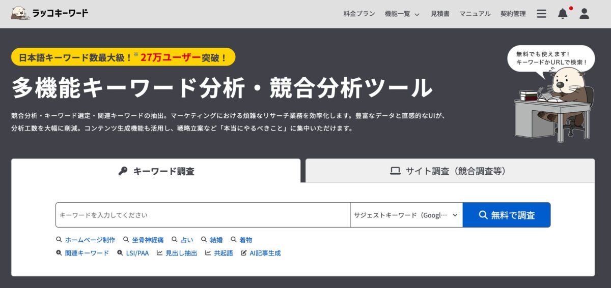 - ラッコキーワードの有料プラン(1ヶ月無料)